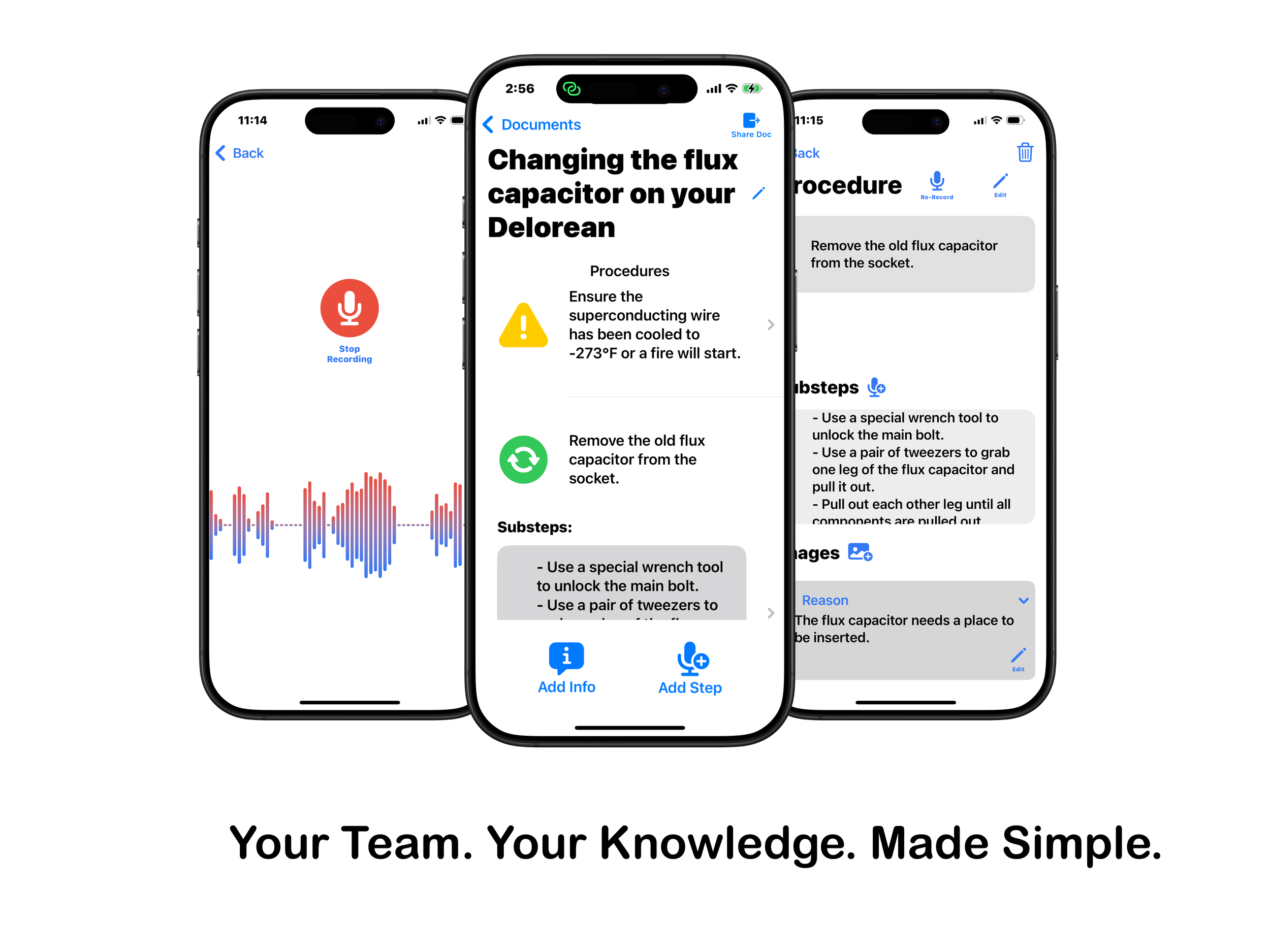 Seamless Knowledge Capture: Unlike video, which requires technical expertise, MODocs allows employees to quickly and easily capture procedures with just their voice, ensuring accurate documentation every time.